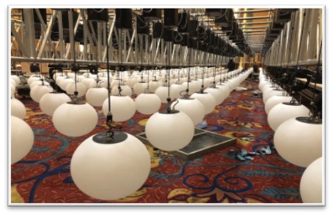 ★備注:1.單個球體功耗為50W。2.從吊機掛鉤到球體底端高度為1.3米。3.兩球之間中心距根據實際應用場景隨意調整、最小為50cm。